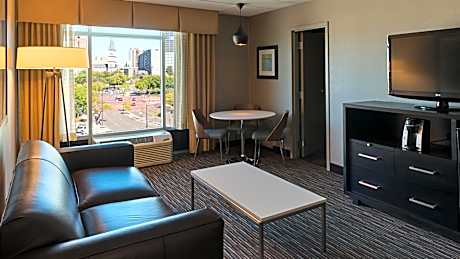 Located in the heart of St. Paul, Minnesota, this hotel is adjacent to the Xcel Energy Center, within walking distance to the Science Museum of Minnesota and the Roy Wilkins Auditorium. Free WiFi and a flat-screen TV are included in every room at Holiday Inn St. Paul Downtown. A microwave and a refrigerator are also provided in each guest room. Guests can enjoy a swim in the indoor pool or relax in the on-site hot tub. A complimentary transfer service to destinations within 4.8 miles of the hotel is offered to all guests. A fitness center is also available on the property.The onsite American cuisine restaurant, Wild Bill's Sports Saloon, features al fresco dining and happy hour. On-site parking is offered for an additional daily charge. The Minnesota History Center, Vietnam Memorial and the banks of the Mississippi River are within 1.6 miles of this hotel. Minneapolis-St. Paul International Airport is 18 minutes’ drive away.