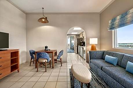 Each guest suite is thoughtfully equipped with a sitting area and cable TV for your entertainment needs, alongside a full kitchen featuring a stove and oven for those home-cooked meals. Select suites boast breathtaking views of the ocean or pool, adding a special touch to your stay.
