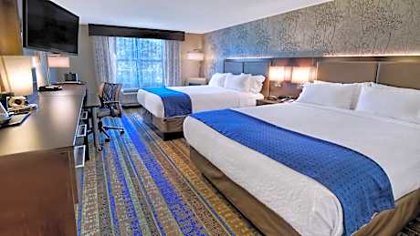 Offering an indoor pool, this hotel is located in Tupelo, Mississippi. Free Wi-Fi access is available. Elvis Presley’s Birthplace is 6 minutes’ drive from the property. A cable TV channels is included in each room at Holiday Inn and Suites Tupelo North. A microwave and refrigerator are also featured. The private private bathroom has a hairdryer. A business center and dry cleaning services are also available for guests’ convenience. In addition, free on-site parking is offered. Grata, the on-site restaurant, is open for breakfast and dinner. It serves Italian and American fare. Rob Leake City Park is 1.4 mi away from the property. Tupelo National Battlefield is located 5 minutes’ drive away. This BancorpSouth Conference Center is 1.9 mi from Holiday Inn and Suites.