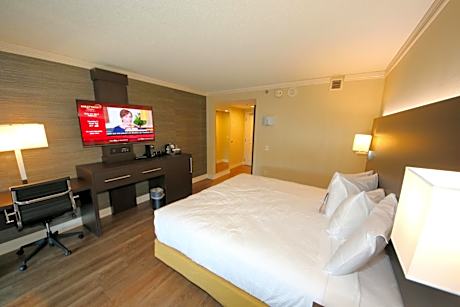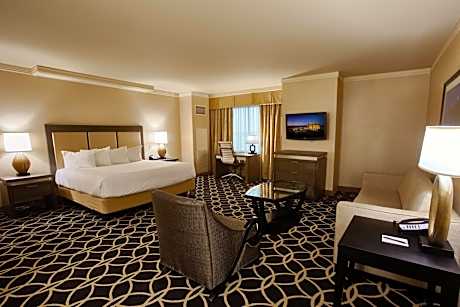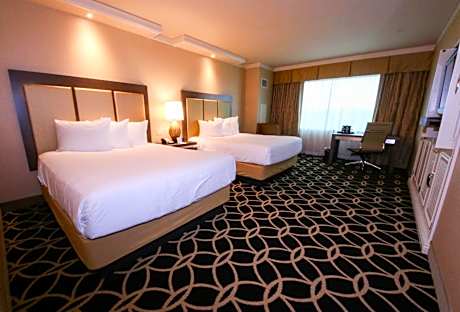Less than 8 miles from Lambert International Airport, this St. Louis hotel features a free airport shuttle and modern rooms with free Wi-Fi. The hotel also features a 120,000-square foot casino and on-site dining options. A flat-screen TV is included in every warmly decorated room at the Hollywood Casino St. Louis. A refrigerator and ironing facilities are also provided in each modern room. The Hollywood Casino St. Louis houses more than 2800 slot and video poker machines, table games and a poker room. A modern fitness center is available on site. Guests can enjoy cocktails or a hearty meal in a variety of lounges and dining options provided at Hollywood Casino St. Louis. Restaurants such as Final Cut Steakhouse, Eat Up! Buffet, Celebrity Grill, Phat Tai, Club Aroma and Studio Bar are available on site. Charlie Gitto’s From the Hill, also on the property, serves Italian favorites daily. Downtown St. Louis is less than a 30-minute drive from the property. The Missouri Botanical Garden is 23 miles from this hotel. Six Flags St. Louis is 29 miles away.