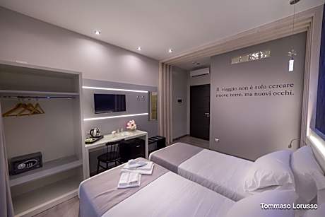 A good location for a relaxing holiday in Trinitapoli, HOLYGOLD Suite **** is a bed and breakfast surrounded by views of the quiet street. The property features a garden, bar, and parking on-site among other facilities. There's a private entrance at the bed and breakfast for the convenience of those who stay. The bed and breakfast offers inner courtyard views, a picnic area, a 24-hour front desk, and free Wifi is available throughout the property. The bed and breakfast will provide guests with air-conditioned units with a desk, a coffee machine, a fridge, a minibar, a safety deposit box, a flat-screen TV, and a private bathroom with a bidet. A balcony with outdoor furniture and garden views is offered in some units. At the bed and breakfast, the units come with bed linen and towels. Buffet and Italian breakfast options with fresh pastries, pancakes, and fruit are available. For guests with children, the bed and breakfast features outdoor play equipment and a baby safety gate. Both a bicycle rental service and a car rental service are available at HOLYGOLD Suite ****. Foggia "Gino Lisa" Airport is 37 miles away, and the property offers a paid airport shuttle service.