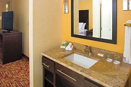 Each suite at the hotel is thoughtfully equipped with a kitchenette featuring a stove, microwave, and full-size refrigerator, designed to make your stay as comfortable as possible. Rooms include a sofa bed and flat-screen TV, with select suites offering a separate living room to enhance your experience.
