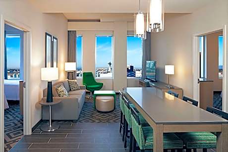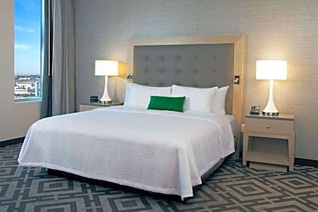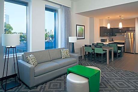 Homewood Suites By Hilton Los Angeles International Airport is located 0.2 mi from LAX Airport via complimentary shuttle. The spacious suites offer separate sleeping and living areas, full kitchens with all necessary dishware, and high ceilings. One and two bedroom suites are available. All rooms include complimentary breakfast and WiFi access. The hotel features a heated, outdoor pool and sitting area, and guests can find breakfast and dinner options in the lobby at the Waypoint Kitchen. Standard amenities include a business center, fully-equipped business center, and lobby market shop – all open 24 hours. Homewood Suites By Hilton Los Angeles International Airport is within 5 mi from Manhattan Beach, 6.8 mi from Venice Beach, and 11 mi from Beverly Hills.