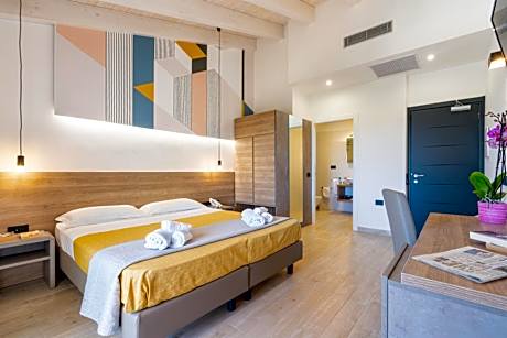 Located in Badesi, 1.5 miles from Spiaggia Li Junchi di Badesi, Horizon Hotel Badesi provides accommodations with a seasonal outdoor swimming pool, free private parking, a fitness center and a garden. This 4-star hotel offers a tour desk and luggage storage space. A terrace, an on-site bar and shared lounge are available. The hotel will provide guests with air-conditioned rooms offering a desk, a safety deposit box, a flat-screen TV, a balcony and a private bathroom with a bidet. All guest rooms feature a closet. Continental and Italian breakfast options are available at Horizon Hotel Badesi. Languages spoken at the reception include German, English, Spanish and French. Sassari Railway Station is 30 miles from the accommodation, while Palazzo Ducale Sassari is 30 miles away. Alghero Airport is 47 miles from the property.
