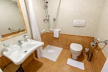 Air-conditioned room with satellite LCD TV, mini-bar and private bathroom with hairdryer.