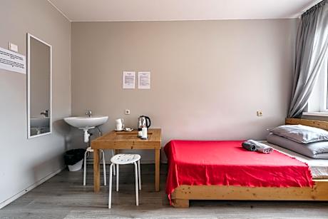 Providing free toiletries, this double room includes a shared bathroom with a walk-in shower. The double room features parquet floors and provides a wardrobe, an electric kettle and city views. The unit offers 2 beds.