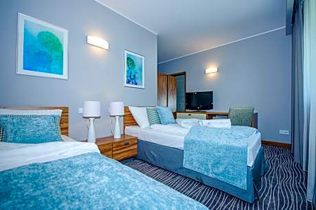 Hotel Active is located right on the shore of Trzesiecko Lake, in the green, quiet Szczecinecki Park. It offers rooms with free Wi-Fi. All the spacious, bright and uniquely furnished rooms at Active have a TV with satellite channels, a safe, a telephone and a private bathroom with a heated floor and a shower. Guests can use a roof terrace or rent waterbikes. Breakfast is served in Jolka Restaurant, which offers Italian and French meals. Szczecinek Bus Station is 0.9 mi from the hotel, and Szczecinek Train Station is 2.3 mi away from Hotel Active.