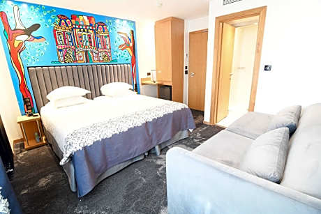 Located in the 9th district of Paris, Hotel Aida Opera is a 15-minute walk from the Opera Garnier and 1.2 mi from the Louver Museum. It offers a fitness room and air-conditioned guest rooms equipped with free Wi-Fi. With an elegant décor, each room at Hotel Aida Opera features a flat-screen TV, a desk and an empty mini-bar. Each room also includes a private bathroom with a hairdryer, free toiletries and a bathtub or a shower. A buffet breakfast is served daily in the breakfast room. Guests will find in the lobby a afternoon snack service with tea, coffee and milk. Several shops, restaurants and bars can be found within a walking distance from the hotel. With a 24-hour reception, Hotel Aida Opera is 1312 feet from Cadet Metro Station (Line 7) and a 15-minute walk from the Galeries Lafayette. Some of our Deluxe rooms are equipped with a bathroom. However, this will be depending upon availability. Do not hesitate to ask and it will be our pleasure to satisfy your request if possible.