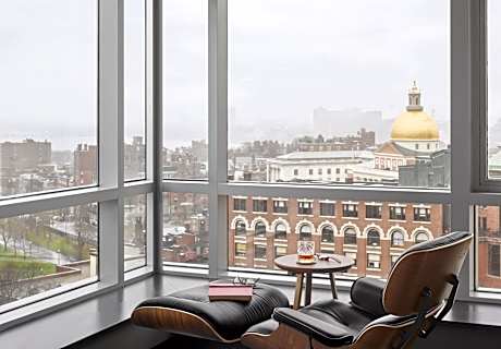 This luxury hotel is located 1 block from Boston Commons Park and the Park Street T Subway Station. This eco-friendly hotel features a gym. Wi-Fi is available. The modern guest rooms at the Hotel AKA Boston Common feature a 27-inch flat-screen TV. A fully stocked mini-bar and a laptop safe are provided. The hotel is pet-friendly and offers a pet bed and dishes. Guests can enjoy the onsite cocktail bar, The Bosworth. Ticket, dining, and tour reservations can be arranged with the Hotel AKA Boston Common’s concierge staff. Valet parking is also offered. The Hotel AKA Boston Common is across the street from the Granary Burial Grounds, a historical graveyard. Quincy Market, which features dining and shopping, is a 15-minute walk away.