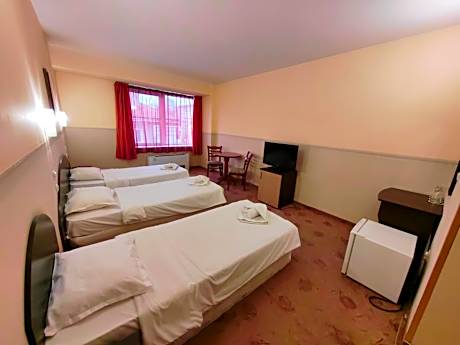Air-conditioned room with 3 single beds, cable TV, free Wi-Fi, a mini-bar and a private bathroom. The room overlooks the main street.