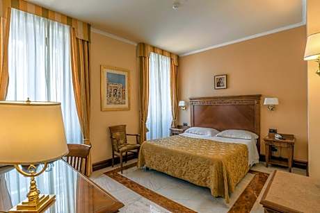 Nestled in the heart of Rome, facing the historic Vatican walls and the entrance to the Vatican Museums, Hotel Alimandi Vaticano offers an exquisite blend of classical elegance and modern convenience. This Art Nouveau-style hotel invites guests to experience its meticulously furnished rooms, each equipped with flat-screen satellite TVs, mini-bars, and private bathrooms. The majority of the rooms offer stunning views of the Vatican Museums or the ancient walls, enhancing the enchanting atmosphere of your stay.
