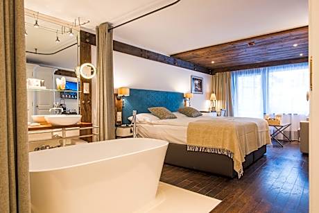 The family-run 4-star superior Wellness Hotel Alpenhof is located in the center of Zermatt, opposite the Sunnegga Cable Car Station and a 5-minute walk from the Gronergrat Railway. The Wellness Hotel Alpenhof hotel has 5 floors and each room is equipped with a mini-bar, cable TV, free WiFi, a safety deposit box, a seating area, and a bathroom. Most rooms also have a balcony. A diverse selection of gourmet menus and freshly prepared food is served at the restaurant. Local and international wines, as well as little snacks can be enjoyed in the new hotel lobby. Guests can relax in the Spa area with natural light, a large indoor pool, a hot tub, a sauna, steam baths and a tropical shower. A beauty salon and relax rooms are available as well at the Wellness Alpenhof. The refined smoking lounge, offers fine digestives, smoky whiskys and a selection of cigars. In winter, the piano bar is the perfect place to end the day sitting at the fireplace, enjoying a cocktail and listening to the pianist. A free transfer from and to the Zermatt Train Station is available on the days of arrival and departure, respectively.