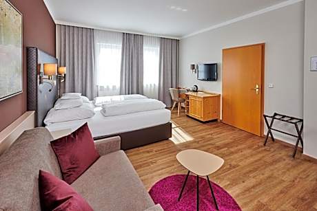 The family-run hotel is in the heart of the city, on the bank of Lake Neutraublinger. The hotel is a short drive from the A3 highway. Due to its strategic location, the historic town of Regensburg and the entire region of eastern Bavaria is easily accessible from the hotel. There is a stylish "See-Stüberl" with tiled stove, the cozy "Kaminzimmer" by the fireplace or a lake terrace and a sophisticated beer garden.