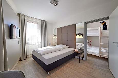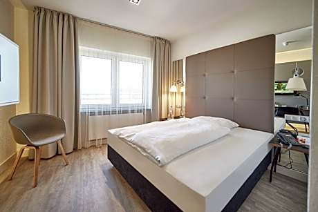 Hotel Amadeus is conveniently located in the trendy Linden district of Hannover, near many cultural and gastronomic attractions and just 1.2 mi from the city center. The hotel is next to the Westschnellweg route, offering great connections to the trade fair and the airport. Run by an international hotelier family, this 4-star design hotel features rooms with contemporary-style furniture, satellite TV and a bright bathroom. All units come with a mini-bar, safe and coffee/tea making facilities. Daily breakfast buffets are available at the Amadeus. Active dining dinner, hot, cold buffet plus three self-coocking stations (steaks and burgers, hot dogs, pizza, pankace, options for vegetarians and vegans) including coffee and tea and drinks (beer, wine, juice, water). at Price from € 25.00 per person. Secured parking is available on-site (reservation required)