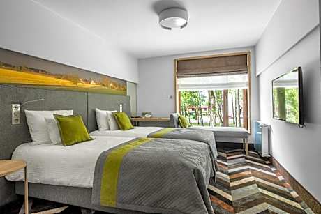 Located in the picturesque resort of Stare Jabłonki, Hotel Anders offers an extensive spa area with free access to a swimming pool, saunas, hot tubs and spa baths. Its rooms come with satellite TV, a refrigerator and free WiFi internet. All guests have free, unlimited access to the hotel spa, featuring an indoor pool with hydromassage and a sauna complex. Hotel Anders’s restaurant serves Polish and European dishes. In the morning guests can enjoy a varied and large breakfast buffet. Offering views of the Szeląg Mały Lake, the Anders is located in a beautiful, peaceful area, surrounded by forests. During their stay at Hotel Anders, guests can enjoy a bowling center, 4 tennis courts, 8 beach volleyball pitches and a garden. Children can have fun in a mini-club with a trampoline and games.