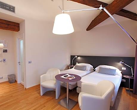 This room features Tisettanta furnishings, carpeted floors, and Artemide Kreon lights. It offers a 32'' LED TV with satellite channels, and free WiFi. The room offers views of the internal courtyards or nearby buildings.