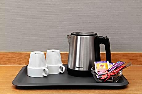 The double room's kitchenette, which features a tea and coffee maker, is available for cooking and storing food. The unit offers 1 bed.