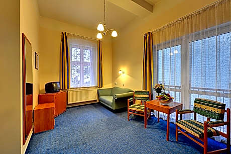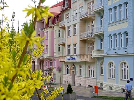 Located in Jáchymov, 7.3 miles from Fichtelberg, Hotel Astoria provides accommodations with a shared lounge, private parking, a terrace and a restaurant. Among the facilities at this property are a kids' club and a tour desk, along with free WiFi throughout the property. The hotel features family rooms. All guest rooms at the hotel are equipped with a seating area, a flat-screen TV with satellite channels and a private bathroom with free toiletries and a shower. Some rooms come with a kitchen with a fridge, a microwave and a stovetop. Guest rooms feature a desk. Guests at Hotel Astoria can enjoy a buffet breakfast. The area is popular for skiing and cycling, and bike rental is available at this 3-star hotel. Market Colonnade is 13 miles from the accommodation, while Mill Colonnade is 13 miles from the property. Karlovy Vary International Airport is 16 miles away, and the property offers a paid airport shuttle service.