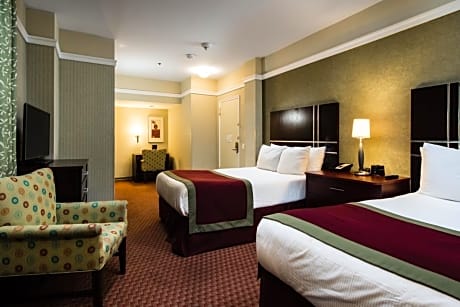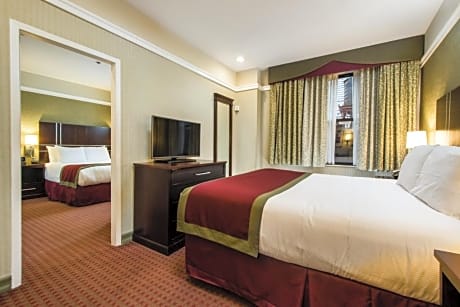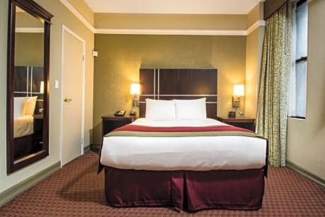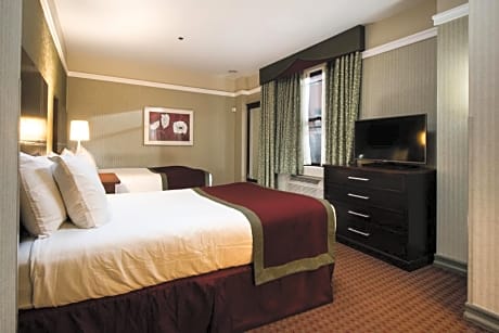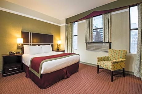 The Hotel at Times Square is a 3-minute walk from a subway station and 6 minutes from Rockefeller Center. It features a 24-hour gym, and rooms with Wi-Fi. Guest rooms offer iPod docking stations and flat-screen cable TVs. They provide safety deposit boxes along with desks. The rooms feature coffee makers and nationwide calling within the United States. While staying at Hotel Times Square, guests can enjoy a business center. Concierge service and shoe shines are available. Radio City Music Hall and Grand Central Station are less than a half mile from Times Square Hotel. The Empire State Building is a 16-minute walk away.