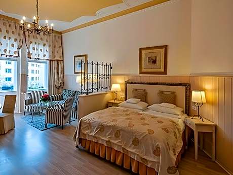 Stylish room with satellite TV, a seating area and a private bathroom.