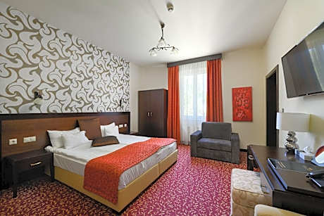 Hotel Aurum in Hajdúszoboszló opened its doors on 4 July 2008, right next to the thermal spa, and offers a friendly atmosphere and high quality service. The air-conditioned rooms provide space and selected quality furniture, so you can enjoy you stay to the fullest. This is also a great place to explore the impressive landscape of the Great Hungarian Plain and the scenic nearby city of Debrecen. License Number(s): SZ19000566
