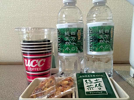 Hotel Avan Sukumo provides flawless service and all the necessary facilities for visitors.Stay connected with your associates, as complimentary Wi-Fi is available during your entire visit. The hotel offers shuttle amenities to assist you in discovering your desired offerings in Shimanto. When arriving by car, you'll be grateful for the on-site complimentary parking at hotel. The hotel offers reception amenities including express check-in or check-out and luggage storage to ensure a comfortable stay for guests.Whether it's an extended stay or simply needing fresh attire, laundromat, dry cleaning service and laundry service provided by hotel ensures your cherished travel garments stay spotless and accessible.Your stay will be comfortable with the presence of room service and daily housekeeping as an in-room amenity for your relaxation and enjoyment.Smoking is permitted solely in the specified smoking zones allocated by hotel.In order to ensure the utmost level of relaxation, the guestrooms feature an inviting design and are equipped with all basic necessities, creating a delightful stay experience. To ensure a pleasant stay, a selection of rooms at hotel come furnished with linen service, blackout curtains and air conditioning, all designed with your ease in mind. In select rooms, visitors can enjoy a touch of amusement with the availability of television and cable TV for their entertainment needs. Within specific rooms, a refrigerator and a coffee or tea maker is conveniently available for your use. Understanding the significance of bathroom facilities in enhancing visitor contentment, hotel offers a hair dryer, toiletries and bathrobes within a few chosen chambers. Start your day stress-free at Hotel Avan Sukumo as breakfast is made available for you on the premises. Various excellent meal offerings at hotel ensure that enticing and easily accessible options are constantly available.Throughout the day and night, guests can enjoy light refreshments with the hotel offering vending machines.