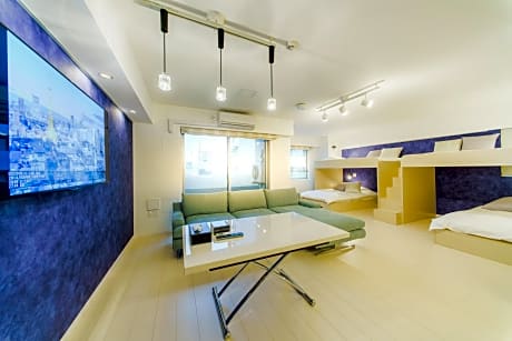 Offering free toiletries and bathrobes, this family room includes a private bathroom with a bath, a shower and a bidet. Guests can make meals in the kitchen that is fitted with a stovetop, a refrigerator, kitchenware and an oven. The spacious family room offers air conditioning, a washing machine, soundproof walls, a tea and coffee maker and a flat-screen TV with streaming services. The unit offers 4 beds and 2 futons.
