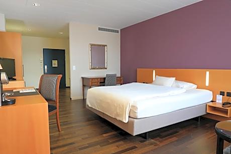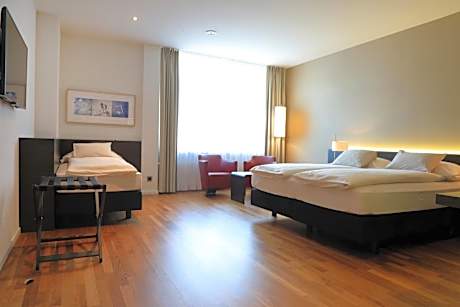 In a central location of Winterthur, 1969 feet from the train station, Hotel Banana City Winterthur features rooms with attached bathroom and a free spa and fitness area for guests older than 15 years depending on the room category. The Migros Fitnesspark is located in the same building, with a separate entrance. All rooms at Hotel Banana City Winterthur Hotel come with a bathroom, a flat-screen TV, free WiFi and a safe deposit box. The mini-bar is free of charge, except for alcoholic drinks. Some rooms are accessible for disabled guests. Breakfast is available every morning. The restaurant on site offers international dishes and business lunches. An underground car park is available at an additional cost. Bicycles are provided free of charge. Zurich is 16 mi away, and Zurich Airport is reachable within a 20-minute drive. Hotel Banana City Winterthur offers rooms with private bathrooms and a spa and fitness area for guests aged 16 and over. Wellness & fitness entrance is included in the room price depending on the room category. The Migros Fitness Park is located in the same building, with a separate entrance 164 feet away.