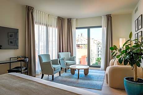 There is a gym and a rooftop chill-out terrace with a swimming pool and wonderful city views. It is located 328 feet from Barcelona Cathedral, in the historic Gothic Quarter. Each elegant room at the Barcelona Catedral Hotel features wooden flooring and air conditioning. Rooms have free WiFi, a laptop safe and flat-screen TV with international channels. Smoking is not allowed in any of the rooms, but there are common areas where smoking is allowed. Creative Mediterranean cuisine is served in the hotel’s 4 Capellans restaurant, which offers a menu for celiacs. There is a wide range of restaurants and tapas bars within a 5-minute walk, including many in the popular El Born district. Hotel Barcelona Catedral 4 Sup is 1476 feet from Plaza Catalunya Square, while Las Ramblas are a 5-minute walk away.