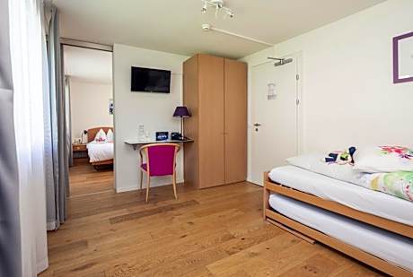 2 bedrooms connected with a sliding door and offering a safety deposit box, 2 TVs, a radio and a private bathroom with shower. Coffee machine with Illy coffee Kettle with a selection of alpine herbal teas