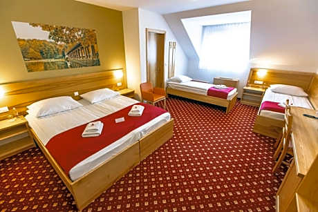 The family-run Hotel Bau is located on the right side of the Drava river in the south-western area of Maribor boasting wonderful views over Pohorje. It offers air-conditioned rooms with free WiFi access. The rooms include a flat-screen cable TV, a desk and a safe. Bathrooms are equipped with a shower, toiletries, a hairdryer and towels. A rich buffet breakfast is available every morning in the hotel's breakfast room. The hotel is only a 5-minute drive from the Pohorje ski slopes and the city center. Free parking is available.