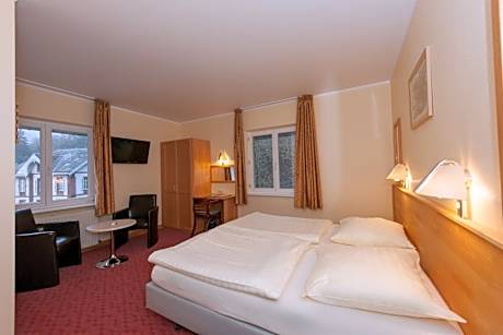 The modern Hotel Belle-Vue is located in the picturesque town of Vianden and benefits from free access to an indoor swimming pool and a sauna. It features a wellness area, an à la carte restaurant and a terrace. Free wireless internet is available throughout the property. The hotel rooms are supplied with a flat-screen TV with satellite channels, a telephone and a safety deposit box. The private bathroom includes a bath or a shower, free toiletries and a hairdryer. Some guest units come with a balcony and/or a spa bath. In the brightly lit breakfast room a breakfast buffet is served every morning and Hotel Belle Vue's restaurant offers a salad buffet and a gastronomic à la carte menu. You can enjoy a beer from the tap in the hotel's bar. Guests can relax on the spacious sun terrace. A solarium, massages and other wellness treatments are available for an additional fee. Vianden Castle is 2953 feet from Hotel Belle Vue. Echternach is a 25-minute drive away and Luxembourg City is 31 mi from the accommodations.