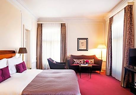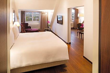 This traditional 5-star palace hotel occupies an elegant Art Nouveau building dating from 1913, located in the heart of Bern next to the Federal Parliament. The Bellevue Palace with is amazing views to the Bernese Alps and the river Aare includes 2 bars, 2 restaurants, a sauna and fitness center.Free WiFi is available. Hotel Bellevue Palace Bern is the official guest house of the Swiss government. Over the years, it has hosted famous guests such as Charlie Chaplin, the Queen of England, Jacques Chirac, Nelson Mandela, Sophia Loren, Bruce Springsteen, and Fidel Castro. The spacious, luxuriously furnished rooms include controllable air conditioning, a flat-screen TV, a mini-bar, and elegant parquet floors. Some offer views of Bern’s historical Old Town or the distant Alpine peaks, while others face the quiet inner courtyard or the Parliament. The Brasserie VUE & terrace serves French and international cuisine (15 GaultMillau points) and the daily breakfast buffet is available every morning until 10:30. For late risers, a continental breakfast can be served in the room, and room service is available daily until midnight. The terrace offers panoramic views over the Aare River or the Alps. Guests benefit from free public transport in Bern and the hotel is conveniently located for daytrips to Interlaken and Lake Thunersee, which is 35 mi from the property.