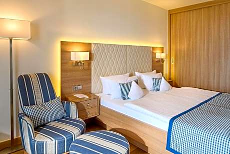 Located high above the Baltic Sea on the island of Rügen, this hotel offers a large spa and a gourmet restaurant. It has panoramic views stretching from the pier of Sellin across the sea and over to the famous chalk cliffs on the horizon. Hotel Bernstein's spa is 2461 ft² in size. It features a pool, sauna and a steam room. There is also a quiet room with sea views. All rooms at the Bernstein include a private bathroom, bathrobes, a TV and large windows. They feature soft pastel colors and light wooden furniture. Fish and meat dishes from West Pomerania are served in the hotel restaurant. During the summer you can dine on the terrace overlooking the sea. Drinks can be enjoyed in the Bernsteinlounge.