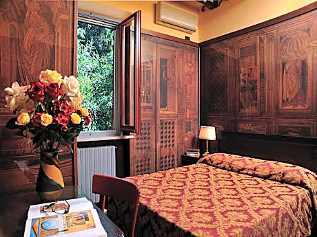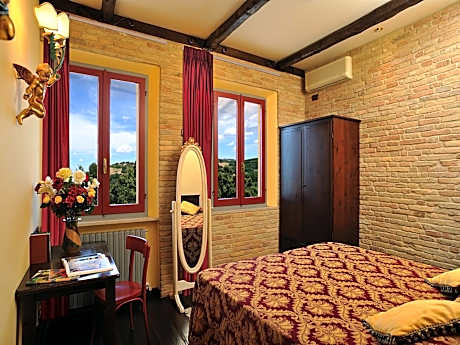 The Hotel Bonconte is an old villa, recently refurbished and modernized, offering every comfort with top class service. It is elegantly furnished and comprises some antique pieces. A peaceful oasis in the town’s historical center, it stands within the town walls, just a short walk away from the “Palazzo Ducale”. The hotel boasts magnificent views of the surrounding countryside. The hotel has a private garden (where breakfast is served during the warmer months), bar and snack bar open 24 hours a day, lounge, reading and meeting rooms and a restaurant serving local specialties. License Number(s): 041067-ALB-00002, IT