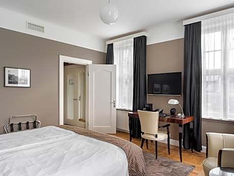 Guests are welcomed into brightly decorated rooms that blend modern amenities with Art Deco flair. Each room is equipped with free WiFi and a flat-screen, Smart TV, ensuring entertainment and connectivity throughout your stay. The quality beds and Philippe Starck fittings are complemented by wooden floors and stylish art deco furniture, creating a haven of comfort and style.