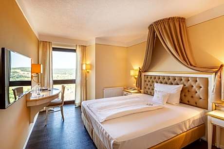 In the middle of the State of Hessen, near the cities of Giessen, Marburg, and Wetzlar, the Castle of Staufenberg has towered on its hill over the little town of Staufenberg since the 13th century. With its imposing appearance, visible far and wide across the lovely Lahn valley, it is still the preferred accommodations for all those who appreciate an elegant atmosphere in a historic setting.