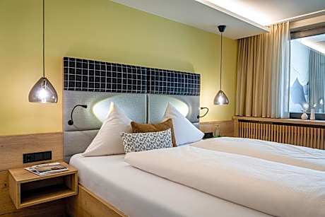 This double room features a private bathroom with a bathtub or a shower and a hairdryer, a telephone, a LCD SAT-TV + Radio, mini fridge and free WiFi. It additionally features a bay window.