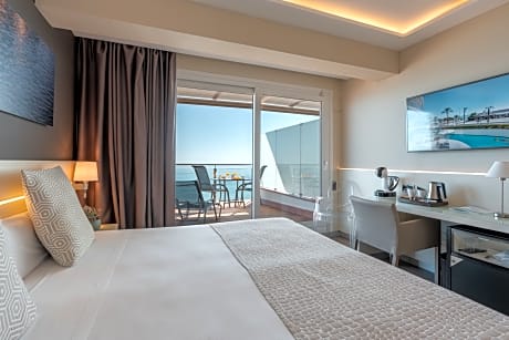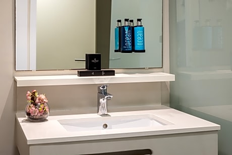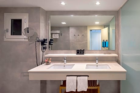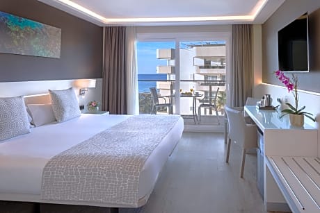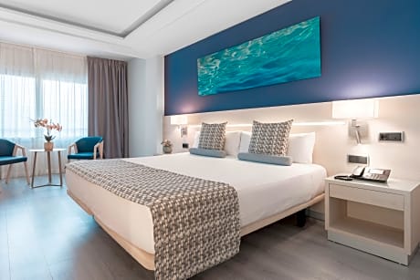 ESTANDAR VISTA MAR 2 PAX includes either a double bed 131-150 width or 2 single beds 80-130 width plus terrace, desk, ironing set, and slippers and is Wheelchair-accessible with a Disability-friendly bathroom.
