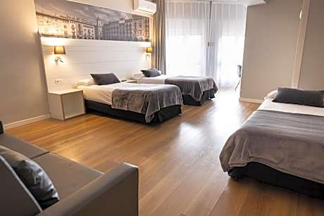The quadruple room offers air conditioning, a dining area, as well as a private bathroom boasting a bath or a shower and a hairdryer. The quadruple room provides a flat-screen TV, a wardrobe, a safe deposit box, parquet floors as well as a quiet street view. The unit has 4 beds.