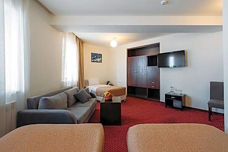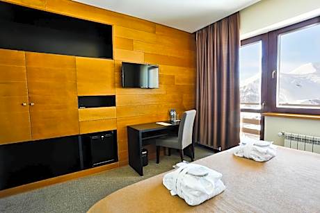 Hotel Carpe Diem Gudauri offers top-notch services and amenities, ensuring guests experience utmost comfort. Share your photos and respond to emails at your convenience, thanks to the free Wi-Fi internet access offered by hotel. Should you require transportation to or from the airport, hotel is able to organize it prior to your arrival date.Taxi and car hire offerings at the hotel simplify arranging your excursions, explorations, and additional activities in Gudauri.Visitors can take advantage of the accessible parking options directly at the hotel.The accommodating team at the reception will aid you with amenities such as luggage storage.Should you desire access to the top entertainment in the city, assistance can be provided by the hotel's tours. Traveling with minimal baggage is achievable at Hotel Carpe Diem Gudauri, as the hotel's dry cleaning service and laundry service ensures your garments stay fresh. Room amenities feature daily housekeeping, allowing you to unwind and make the most of your visit. Each accommodation at Hotel Carpe Diem Gudauri is thoughtfully created and adorned to provide visitors with a comfortable, home-like atmosphere.In certain rooms, the hotel offers blackout curtains and air conditioning for guest convenience and satisfaction.At Hotel Carpe Diem Gudauri, the uniquely tailored rooms provide a configuration choice resembling a balcony or terrace. In select rooms, guests at the hotel can enjoy top-notch in-room entertainment with television and cable TV available for their convenience. Rest assured, in a few chosen rooms, you will find the convenience of a refrigerator, a coffee or tea maker, bottled water, instant coffee, instant tea and mini bar at your disposal.Maintain your cleanliness and comfort using a hair dryer, toiletries and bathrobes available in select guest restrooms. Begin your holiday on a high note. At Hotel Carpe Diem Gudauri, your mornings are greeted with a delightful, free breakfast.Throughout the day and evening, grab a bite to eat from hotel's self-service vending machines whenever you please.