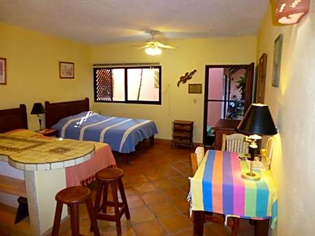 Hotel Casamar Suites is just 98 feet from Playa Zicatela Beach in Puerto Escondido and features free Wi-Fi and a shared swimming pool. The property also has BBQ facilities and complimentary yoga. The traditionally furnished studios and apartments at this property come with a seating and dining area, as well as a fully equipped kitchen and a private patio. There are several supermarkets and markets within 1.2 mi of Casamar Suites for guests who want to cook at home, and the area offers restaurants serving national and international cuisine. The property has onsite massage services and acupuncture treatments can be arranged for an extra fee. Puerto Escondido City Center, where guests will find shopping, is 1.2 mi away, while the city’s international airport is a 15-minute drive away. One-Bedroom Flat First Floor/ Dalia, and Economy Studio/Lily; both have spiral staircase entry. Basic Studio/ Jazmin; it is not soundproof.