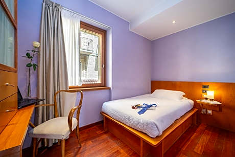 Hotel Cesare is an elegant hotel, boasting bright interiors and a sophisticated atmosphere. In a pedestrian-only area, within the historic walls of San Marino, the property is 65 ft from public parking in Piazzale Cava Antica. The rooms are tastefully decorated in vibrant colors and have parquet floors. Each includes free Wi-Fi, air conditioning, and Sky TV with international channels. The rooms overlook the historic center, the Tower of San Marino, or the valley. The buffet breakfast includes cake, homemade tarts, cold cuts and boiled eggs. Typical San Marino products are also served. The restaurant provides discounts to guests and specializes in homemade pasta, and grilled meat and fish. Cesare Hotel features an impressive glass façade, a terrace, and landscaped grounds. The staff here can provide a short guide of the historic center, as well as discount cards to some of the castles, museums and shops. You can easily walk to Palazzo Pergami, the 3 towers, and the gallery of Saint Francis. Rimini and the Adriatic Sea are a 30-minute drive away.
