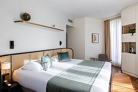 Hotel Le Friedland is located 1640 feet from the Champs-Elysées and the Arc de Triomphe. Rooms at Champs Elysées Friedland are furnished in printed fabrics and are contemporary in style. Each has an LCD TV with satellite channels and some have a private balcony. The hotel is a 10-minute walk from Charles de Gaulle - Etoile Metro and RER station. These transport links offer direct access to Le Louver, Le Marais district and Disneyland Paris.