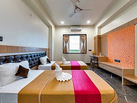 Great care is taken to ensure guests experience comfort through top-notch services and amenities. Remain linked during your visit by utilizing the complimentary internet access available. Services offered by taxi and car hire at the hotel ensure effortless exploration of Dhule.The hotel offers complimentary parking for guests who arrive with their own mode of transport. Effortlessly plan your daily activities and travel requirements with express check-in or check-out and luggage storage provided by the front desk services.Securing passes to the city's top attractions is simple with the hotel's ticket service and tours.For extended visits or whenever required, the dry cleaning service and laundry service ensures your preferred travel garments remain clean and accessible. During leisurely days and evenings, in-room amenities such as room service and daily housekeeping enable you to maximize your stay in the room.The hotel is completely smoke-free.Crafted for coziness, every guestroom provides an array of features, guaranteeing a tranquil night's sleep while maintaining the level of comfort. For an elevated experience at hotel, select rooms are equipped with air conditioning to improve your stay. For certain chosen rooms, guests can enjoy in-room amusement like daily newspaper, television and cable TV as a part of their stay.Rest assured that your hydration needs will be met, as some guestrooms are equipped with a coffee or tea maker and mini bar. It is worth noting that certain guest bathrooms feature a hair dryer and toiletries for your convenience. During your visit, indulge in a range of delightful culinary choices at hotel to enhance your experience.Concerned about your dining preferences? Fret not! Hotel Chandradeep Regency offers an assortment of culinary varieties featuring halal choices, catering to all tastes. Experience a fantastic evening effortlessly! Relish an entertaining night without venturing beyond the confines of the bar. Hotel Chandradeep Regency provides a superb assortment of leisure amenities for guests to enjoy. Begin your holiday perfectly by taking a plunge into the swimming pool.At the hotel, enjoy a laid-back beverage experience by the poolside bar, sipping on a soothing cocktail.
