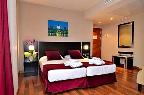 Hotel Clement Barajas, just 1.2 mi from Madrid Airport, offers stylish, air-conditioned rooms with satellite TV and free Wi-Fi. The rooms in Clement Barajas all have wooden floors, safes and work desks. They also have modern bathrooms. The hotel has an à la carte restaurant that offers traditional dishes made from high quality ingredients. There is also a TV showing live sports events in the evenings. Barajas Metro Station is 1312 feet away or a five-minute walk from the hotel, and central Madrid can be reached in 30 minutes by car. Clement Barajas. Wanda Metropolitano Stadium is 10-minutes' drive from the property. Complimentary coffee for early risers from 3:30 a.m. to 7:00 a.m.