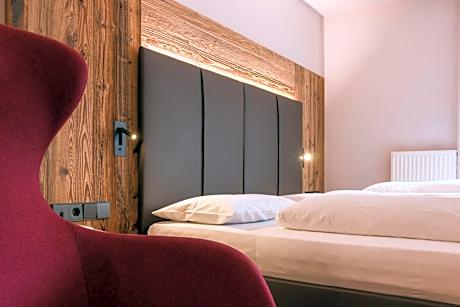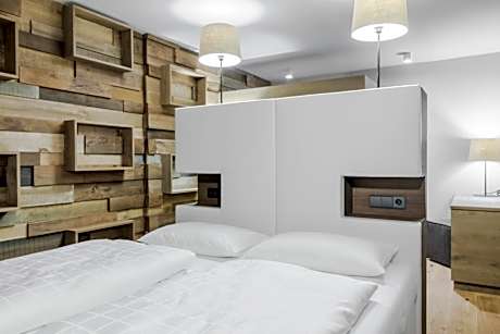This double room has a satellite flat-screen TV. Some have a balcony.