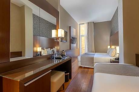This elegant hotel is set in Barcelona’s Gothic Quarter, in an impressive, colonial, stone building with a clock tower. It is a 10-minute walk from Barcelona Cathedral and Barceloneta Beach. Hotel Colonial’s bright, air-conditioned rooms feature wooden floors. They are soundproofed and have a flat-screen TV and mini-bar. You can hire the safe, and the private bathroom comes with a hairdryer and amenities. A buffet breakfast is served in the Colonial Hotel café. Guests can relax with a free newspaper in the stylish lounge, with its white leather sofas, where Wi-Fi is free of charge. Barcelona Hotel Colonial has a tour desk. Barcelona Marina and the boutiques of the trendy Born district are 5 minutes’ walk away. Parking is also available within a 5-minute walk of the property.
