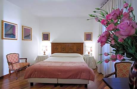 Hotel Columbia is in the historic center of Rome, between the Opera House and the last bastion of the Diocletian Baths. The rooms feature free Wi-Fi, soundproof windows, and a flat-screen TV with satellite channels. Each room is individually air-conditioned and features a private bathroom, complete with bathtub or shower and toiletries. The style is classic, with chandeliers and carpeted or parquet floors. Some rooms feature exposed wood beams on the ceilings. The Columbia features a roof garden with bar, where breakfast is served in the morning and guests can relax during the day. The extensive cold buffet starts at 7:00 during the week.