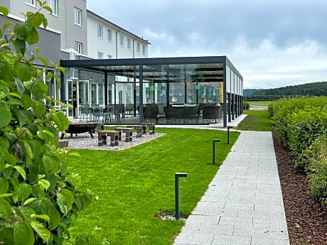Located in the nature park Southern Black Forest, the Hotel Sombea Donaueschingen impresses with a special location at the airfield Donaueschingen. Due to the optimal transport connection, the hotel is the ideal starting point for business as well as private travelers or conferences. The hotel is characterized by its elegant and cordial atmosphere and offers 78 rooms in the economy, business and first class categories, as well as a Diamond Lounge Suite. Every room features free WiFi, adjustable air-conditioning, 50″ Smart TV, and a working desk. From the over 984 ft² covered and quiet panoramic terrace, the magnificent panoramic view of the Baar of the Black Forest invites you to enjoy and dream. The Dé·jà-vu restaurant enchants with its atmospheric and contemporary style and relies on selected regional products for its culinary delights. The hotel offers free parking as well as good connections to the A81 motorway and Donaueschingen-Villingen Airport. It is also well placed for day trips to Switzerland, Freiburg or Lake Constance.